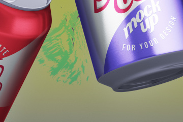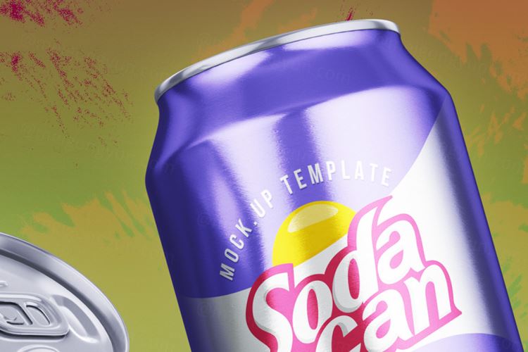 图穷联素材库 » 漂浮的易拉罐样机 Gravity Psd Soda Can Mockup