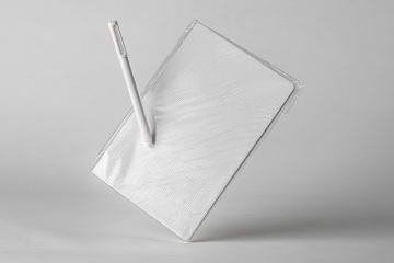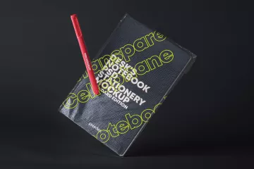 图穷联素材库 » 带有透明包装的漂浮psd笔记本模型样机 Psd Notebook Transparent Cover Mo...