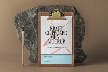 图穷联素材库 » 牛皮纸剪贴板上的典雅餐厅psd菜单样机 Kraft Clipboard Psd Menu Mockup