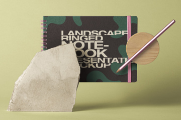 图穷联素材库 » 优雅的环状psd笔记本横向样机 Psd Landscape Notebook Mockup