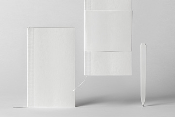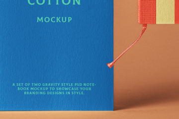 图穷联素材库 » 一款带笔配件的优雅棉质psd笔记本样机 Cotton Psd Notebook Mockup