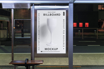 公交站Psd广告牌样机 Bus Stop Psd Billboard Mockup