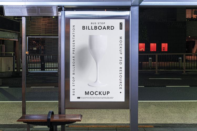 图穷联素材库 » 公交站Psd广告牌样机 Bus Stop Psd Billboard Mockup