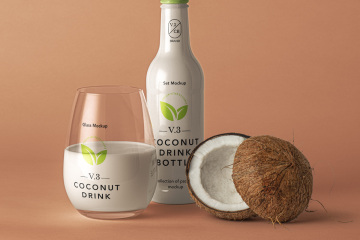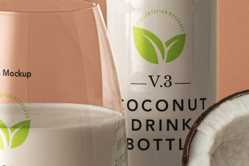 图穷联素材库 » 一款功能多样的新鲜饮料风格psd瓶样机 Coconut Drink Psd Bottle Mockup
