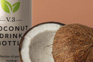 一款功能多样的新鲜饮料风格psd瓶样机 Coconut Drink Psd Bottle Mockup