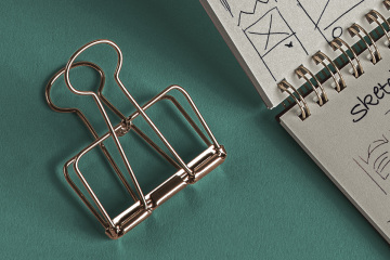 带有文具配件的原始翻转式打开psd环形记事本样机,可以展示您的任何设计。借助智能层,轻松添加自己的图形。