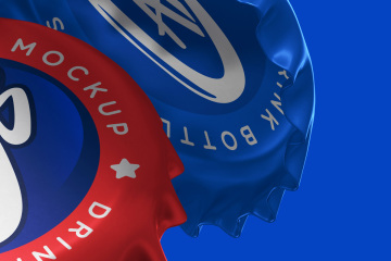 图穷联素材库 » 漂浮的啤酒盖 饮料盖 瓶盖样机 2Gravity Psd Bottle Cap Mockup 2
