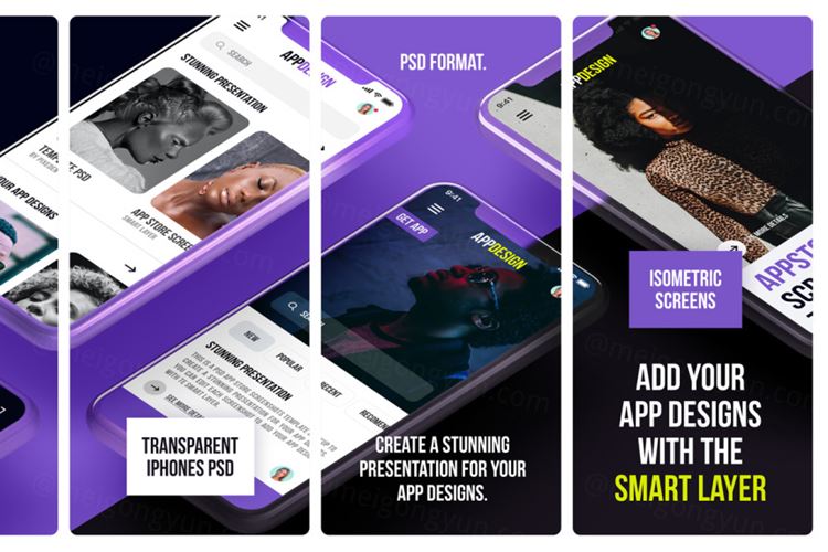 图穷联素材库 » Psd App Store屏幕截图模板样机 Psd App Store Screenshot Template Vol2
