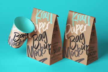 图穷联素材库 » 一款优雅的牛皮纸psd咖啡袋样机 Kraft Paper Psd Coffee Bag Mockup