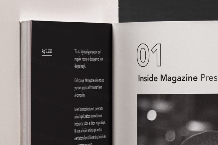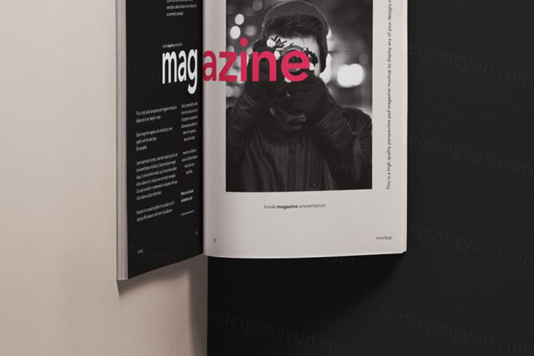 图穷联素材库 » 一个优雅而原始的psd杂志开页面样机 Open Psd Magazine Mockup Template