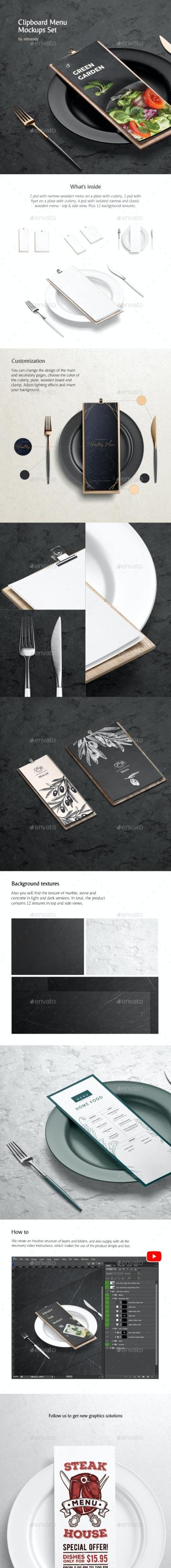 图穷联素材库 » 高档咖啡厅餐厅木制菜单菜谱设计提案样机PSD模板 Clipboard Menu Mockups Set