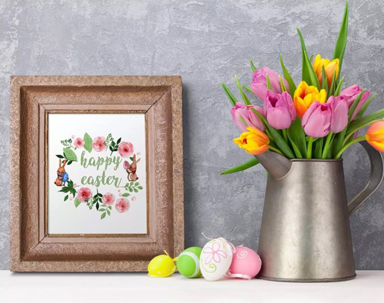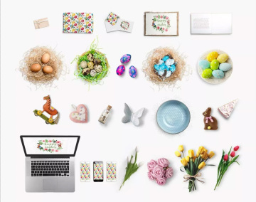 图穷联素材库 » 复活节元素场景鲜花、鸡蛋、装饰和一些设备样机
