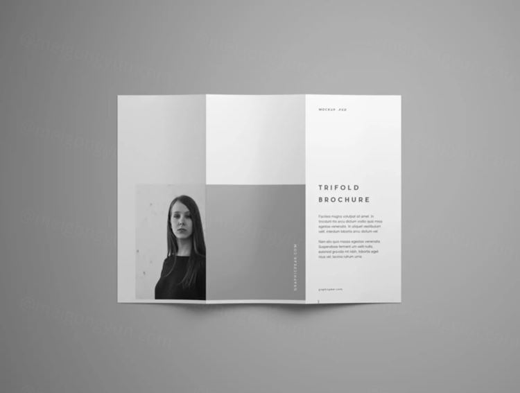 一套完整的模型从七个不同的角度显示一个三折页小册子,完全分层的PSD文件与智能对象。尺寸:4500 x 3500 px, 300 dpi。
