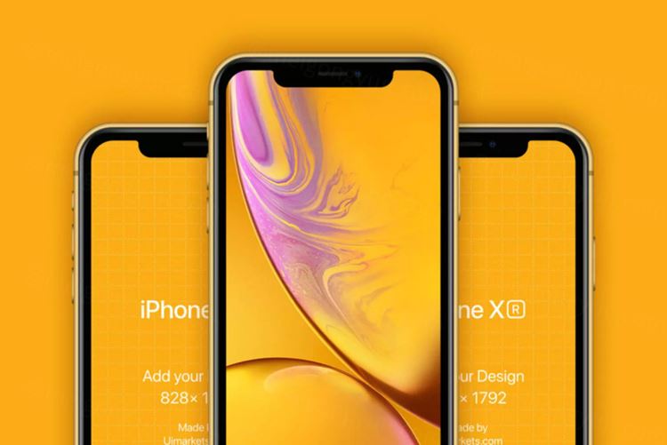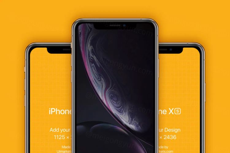 从正面展示iPhone XS和XR的样机。基于矢量的PSD文件(尺寸:6064 x 4048 px),允许您更改所有颜色和显示内容。