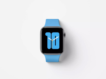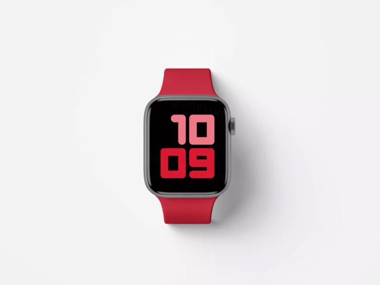 苹果手表系列5的超逼真模型。PSD文件允许您交换显示内容(智能对象)和改变腕带的颜色。尺寸:5000 x 3750像素,300 dpi。