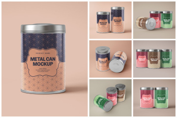 在这种完美的光泽金属圆形锡盒包装样机套件上以更有效的方式展示您的锡盒包装设计,用于茶,咖啡,饼干,糖果,巧克力等的包装设计。通过智能对象轻松地个性化茶或其他产品的包装设计并更改背景任何颜色。