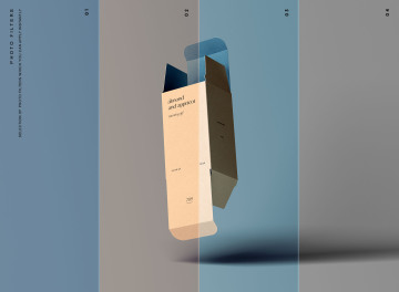 图穷联素材库 » 矩形包装盒x展开图设计提案样机PSD模板 Unfolded Rectangle Box Mockup