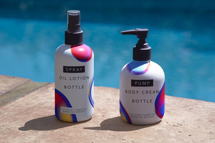 图穷联素材库 » 户外游泳池沐浴露洗发露包装设计提案样机PSD模板 Outdoor Psd Cosmetic Mockup Set