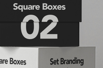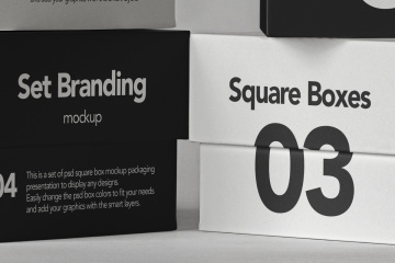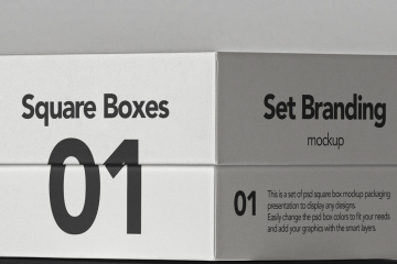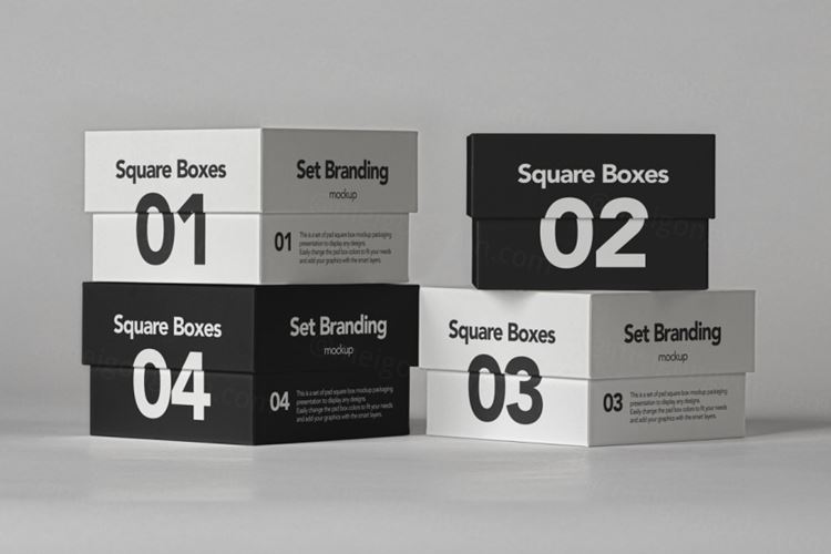 图穷联素材库 » 高质量方盒鞋盒包装设计提案样机PSD模板 Psd Square Box Mockup Set