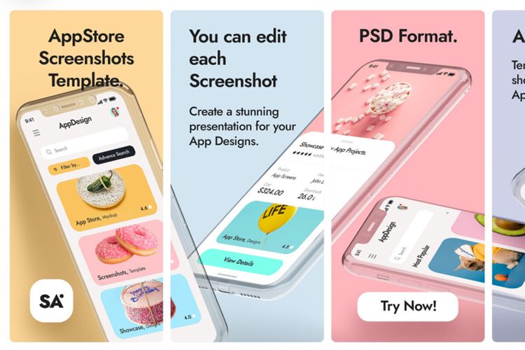 另一个令人惊叹的psd App Store屏幕截图模板样机,可显示您的任何移动设计。您可以使用自己的图形轻松地编辑每个屏幕截图。