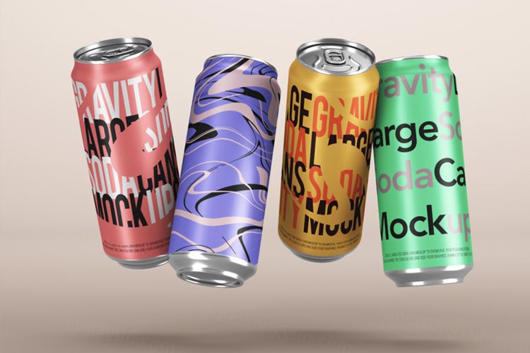 图穷联素材库 » 悬浮的易拉罐可乐汽水饮料包装设计样机PSD模板 Gravity Psd Soda Can Mockup Set