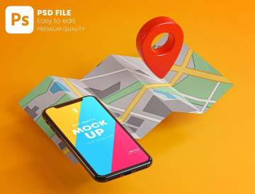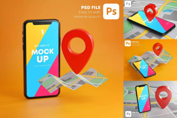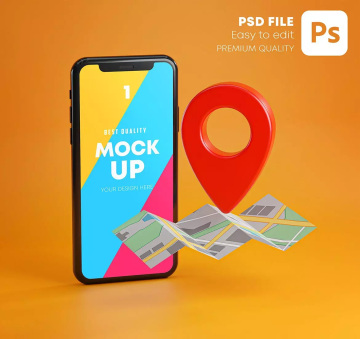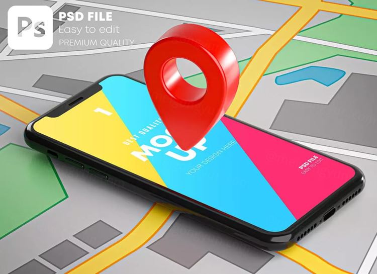 图穷联素材库 » 红色GPS标记定位地图元素智能手机样机素材包