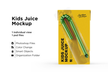 此125ml带吸管果汁纸盒样机非常适合向您的客户展示您的包装设计,或在您的作品集中展示您的作品。易于分别重新着色零件。相当简单易用。该PSD样机包括用于设计的特殊层和智能对象。