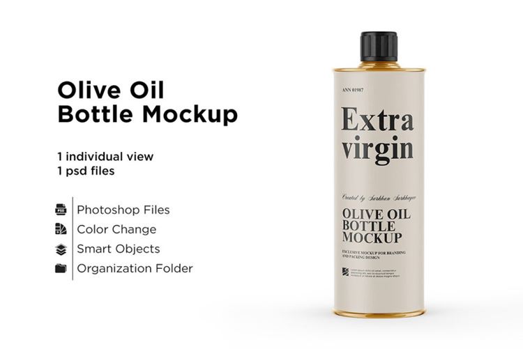 在这个1L金属橄榄油瓶样机上,以更有效的方式显示您的标签设计。易于使用。易于分别为不同零件上色。包括特殊图层和智能对象,以供您制作惊艳的艺术品。