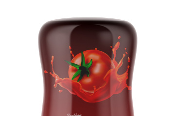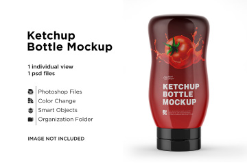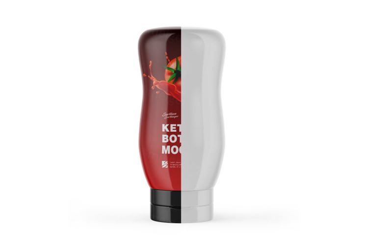 将您的包装设计应用到此倒立效果250g番茄酱瓶样机。品质卓越。相当简单易用。包含艺术品的特殊图层和智能对象,样本设计不包含在下载文件中。