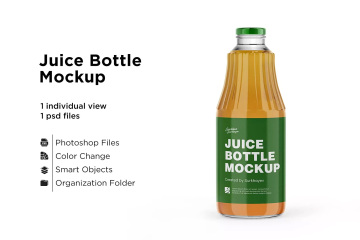 在这个透明的苹果汁玻璃瓶样机上,以更有效的方式显示您的包装设计。盖子有光泽和金属表面处理。可以使用。包括特殊图层和智能对象,以供您制作惊人的艺术品。
