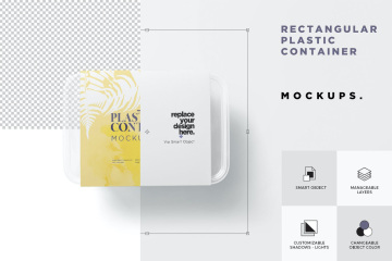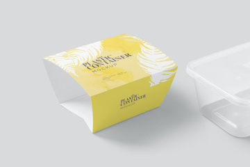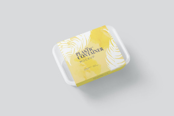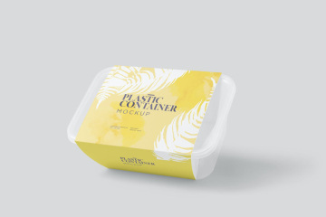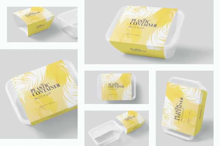 高品质的塑料饭盒保鲜盒餐盒外卖包装设计VI样机展示模型mockups,令人惊叹的塑料食品容器套模型,可在真实环境中展示您的食品盒包装标签设计。您可以仅使用其精心描述的图层和智能对象选项来更改设计,颜色,阴影,效果和背景。