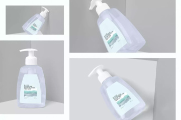 洗手液包装设计VI样机展示模型mockups,使用这些洗手液模型,并以不同角度展示您的泵瓶包装和品牌设计。提供智能对象功能,只需单击一下即可添加您的设计。这些模型还提供了管理良好的图层,用于自定义阴影,效果和背景。