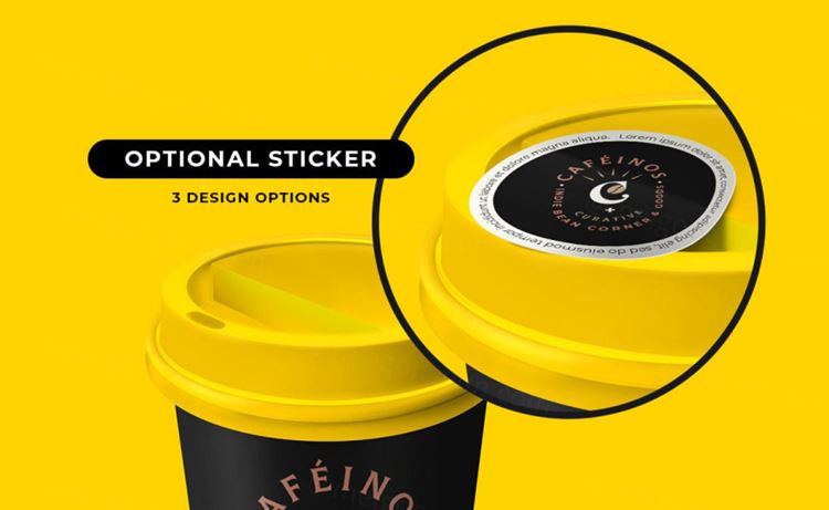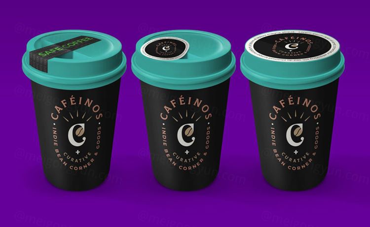 带安全密封贴纸的咖啡杯VI样机展示模型mockups