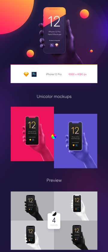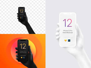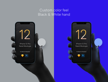 巨型单色和黑色/白色样机手套装。2个不同的手位置。高质量的模型可以为您设计完美的演示文稿。它具有适用于iPhone 12 Pro(灰色,藏青色,金色,银色,白色)的模型。单色样机与Sketch和Photoshop CS / CC兼容。易于使用。