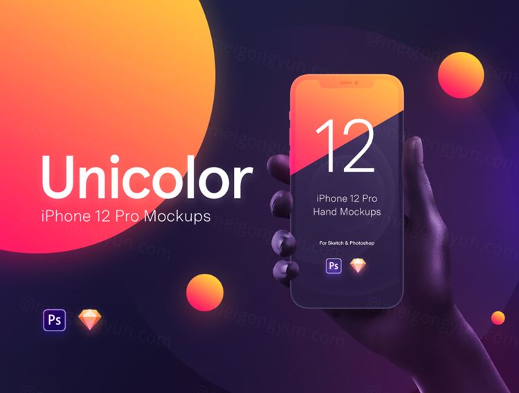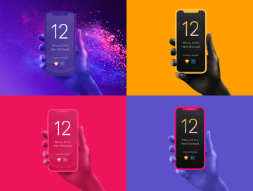 图穷联素材库 » 高质量苹果手机UI贴图样机APP设计提案模板 Unicolor Hands iPhone 12 Pro Mockups