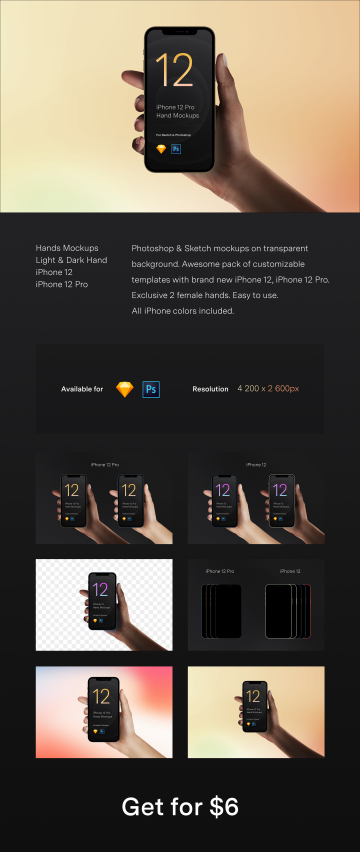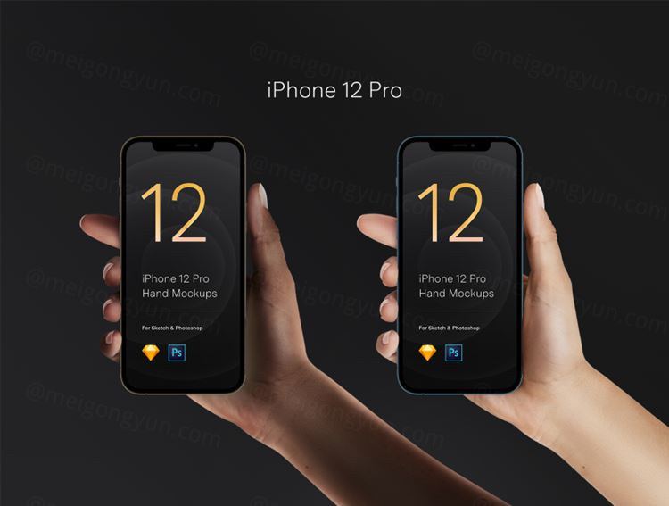 全新的iPhone 12和iPhone 12 Pro,2个样机在透明背景上。带有全新iPhone 12 Pro,iPhone 12的超棒可定制模板包。独家2只女性手。易于定制。高质量的模型可以为您的设计创建完美的演示。与Sketch和Photoshop CS / CC兼容。
