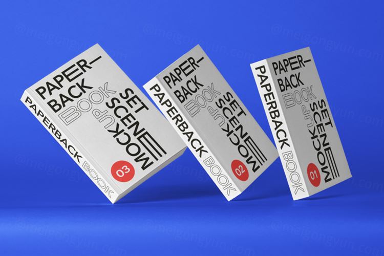 图穷联素材库 » 平装书籍封面设计贴图展示样机PSD模板 Paperback Set Psd Book Mockup Scene