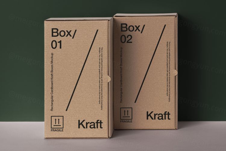 图穷联素材库 » 牛皮瓦楞纸快递盒包装设计展示样机模板 Rectangular Psd Boxes Kraft Mockup