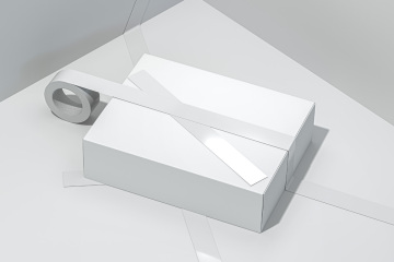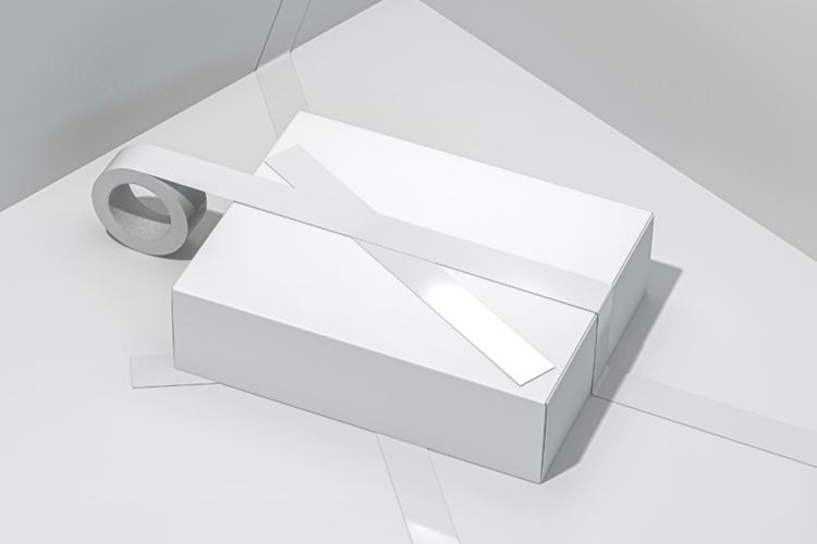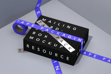 图穷联素材库 » 高端品牌包装盒胶带贴图展示样机模板 Tape Psd Cardboard Box Mockup