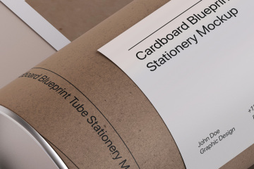 图穷联素材库 » 蓝图印刷广告纸筒包装盒设计展示样机模板 Blueprint Cardboard Psd Tube Mockup