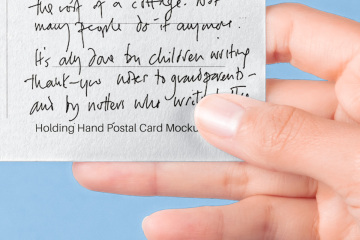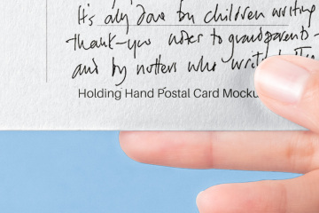 图穷联素材库 » 手持明信片设计展示样机模板 Hand Holding Psd Postal Card Mockup
