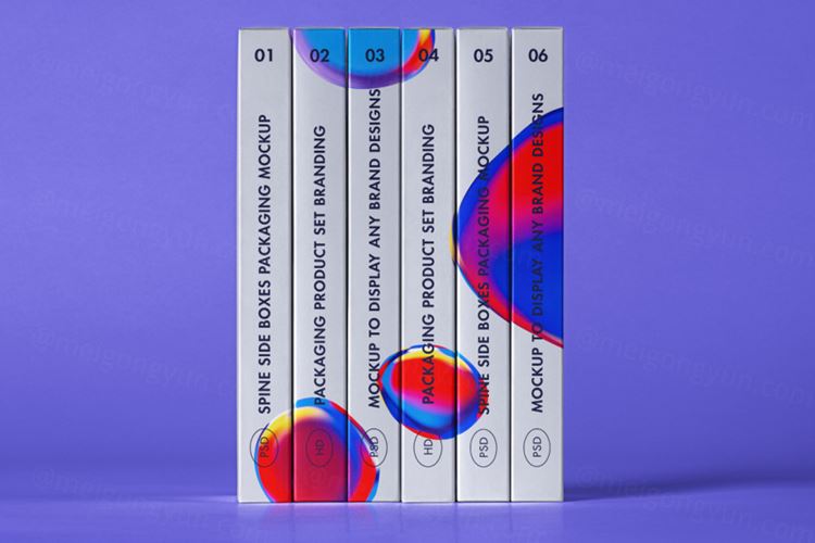 图穷联素材库 » 包装盒侧面视图设计展示样机模板 Spine Psd Box Packaging Mockup