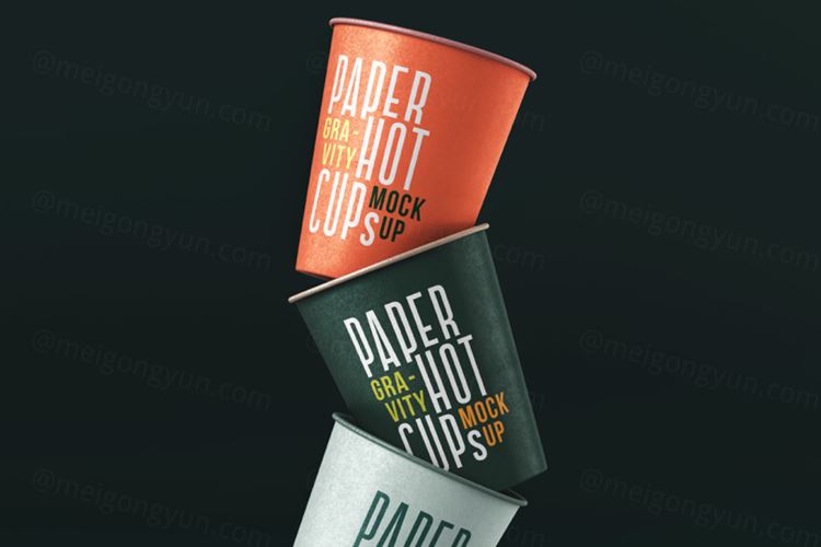 图穷联素材库 » 自由飘落的纸杯设计品牌vi贴图展示样机模板 Gravity Paper Cup Psd Mockup