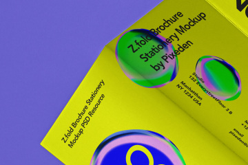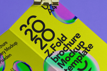 图穷联素材库 » 高质量悬浮的折页小册子宣传单设计贴图展示样机 Hanging Z-Fold Psd Brochure Mockup