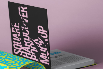 图穷联素材库 » 带有防尘套书皮的精装书籍封面设计展示样机模板 Square Psd Book Mockup Dust Jacket