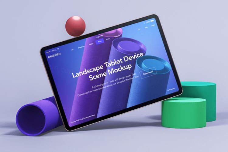 图穷联素材库 » 高质量iPad平板电脑几何元素场景样机模板 Psd Tablet Mockup Device Scene