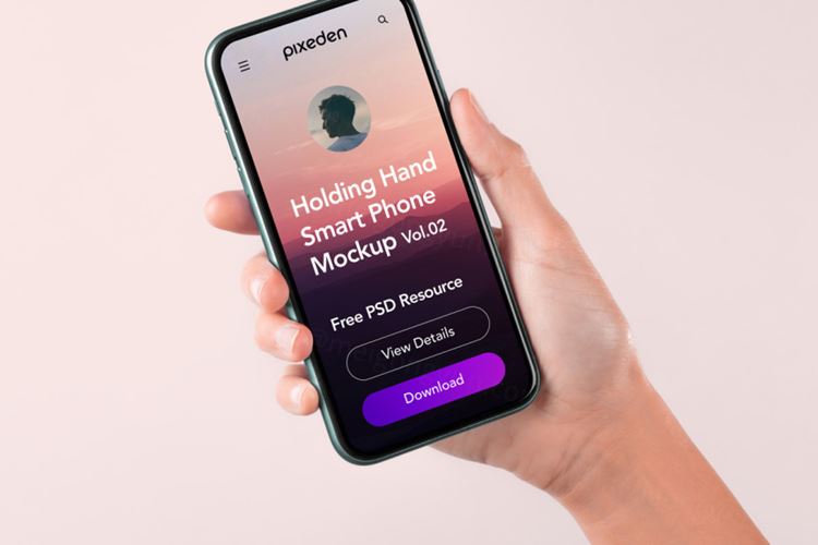 优雅的手持iPhone手机UI设计界面贴图展示样机模板 Psd Hand Holding Phone Mockup