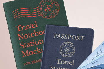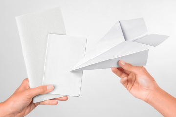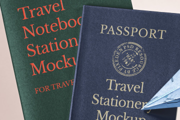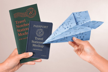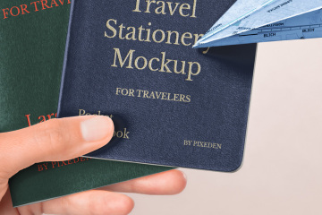 图穷联素材库 » 手持纸飞机护照设计贴图展示样机模板 Hand Holding Psd Stationery Mockup