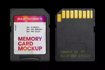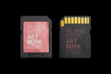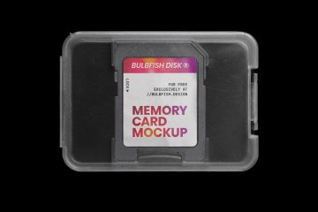 图穷联素材库 » 复古老物件带有塑料胶带塑料盒的闪存卡内存卡存储卡样机模板 Memory Card Mockup