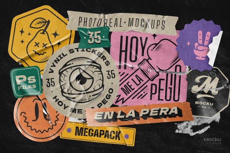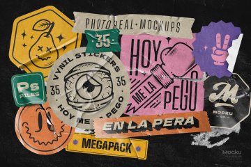 图穷联素材库 » 潮流做旧仿旧不干胶贴纸撕纸纹理海报样机模板 Vynil stickers